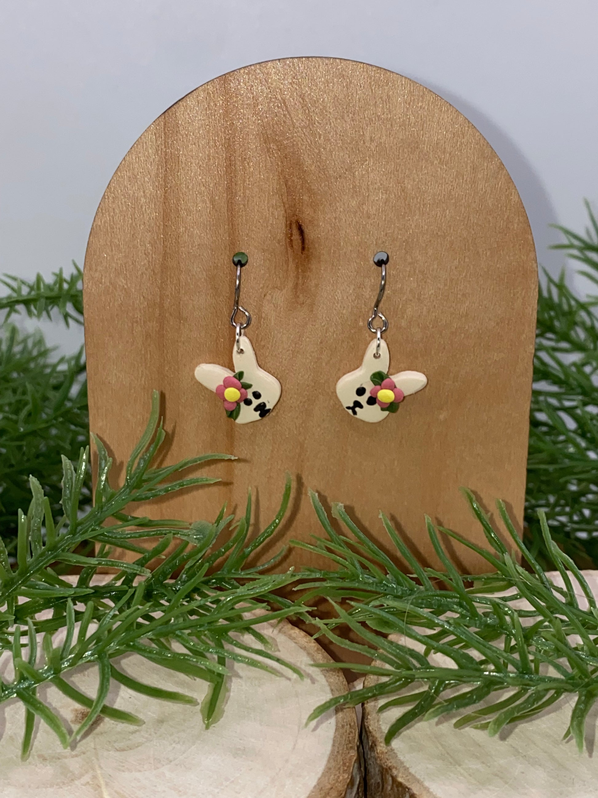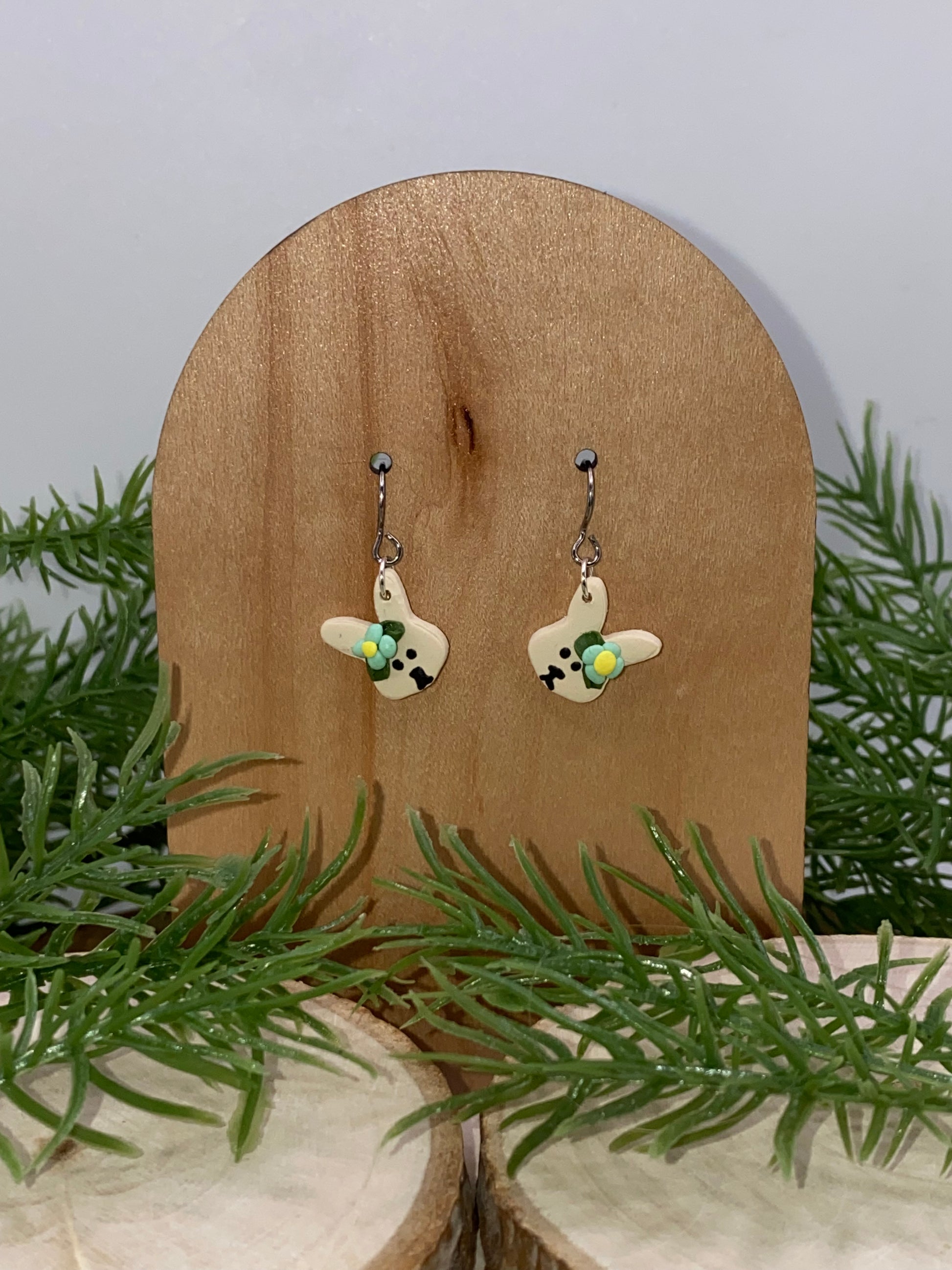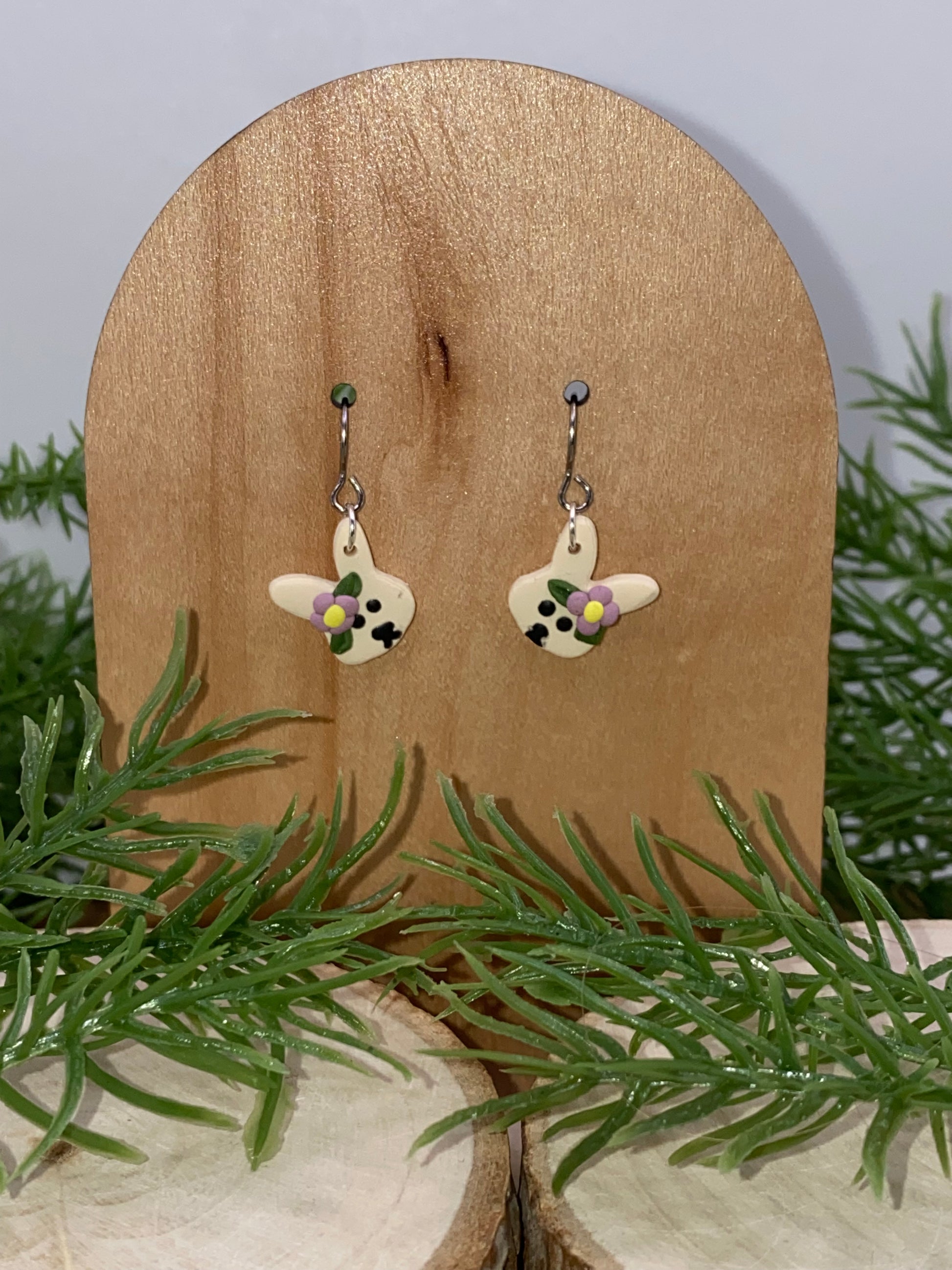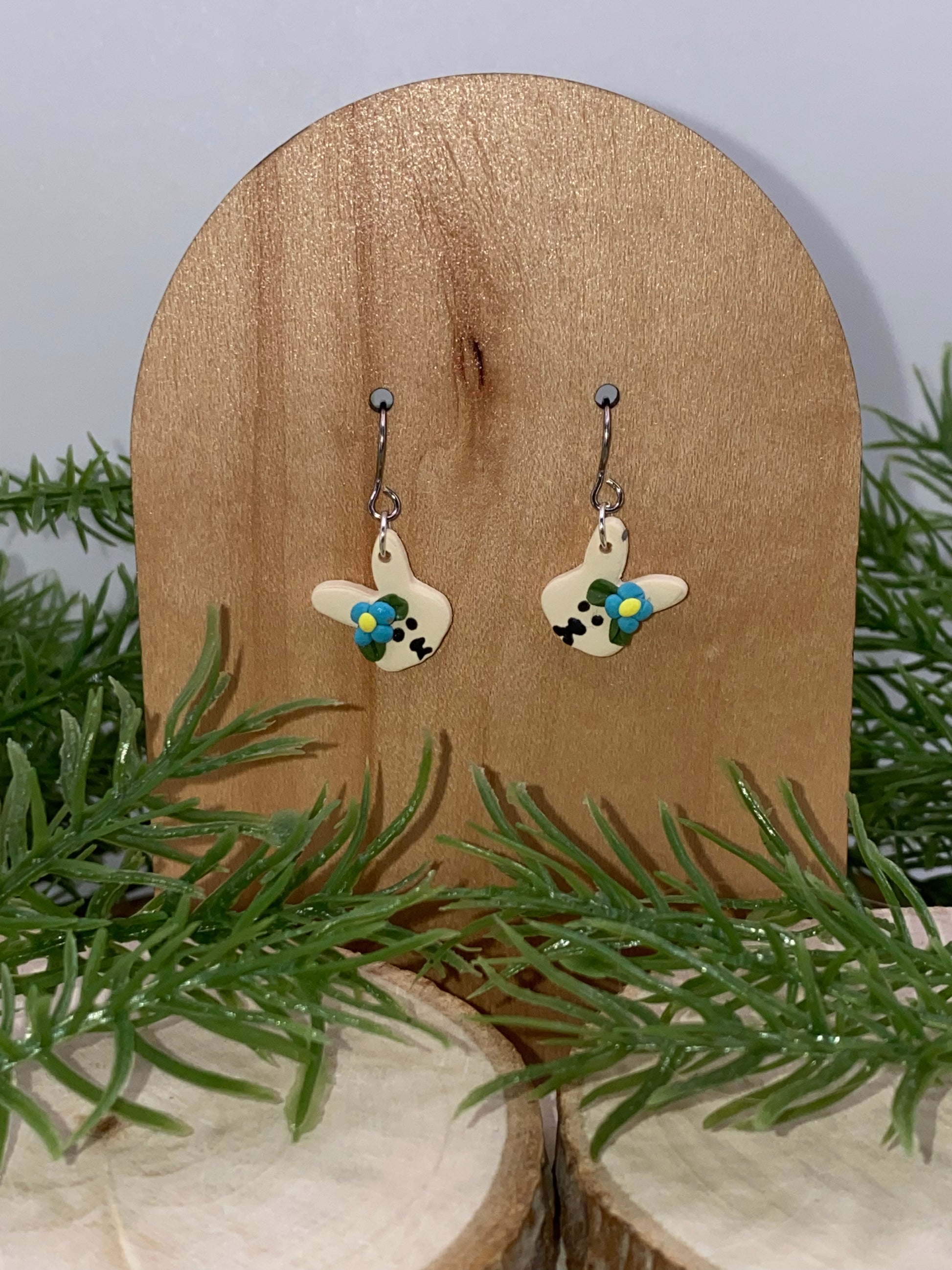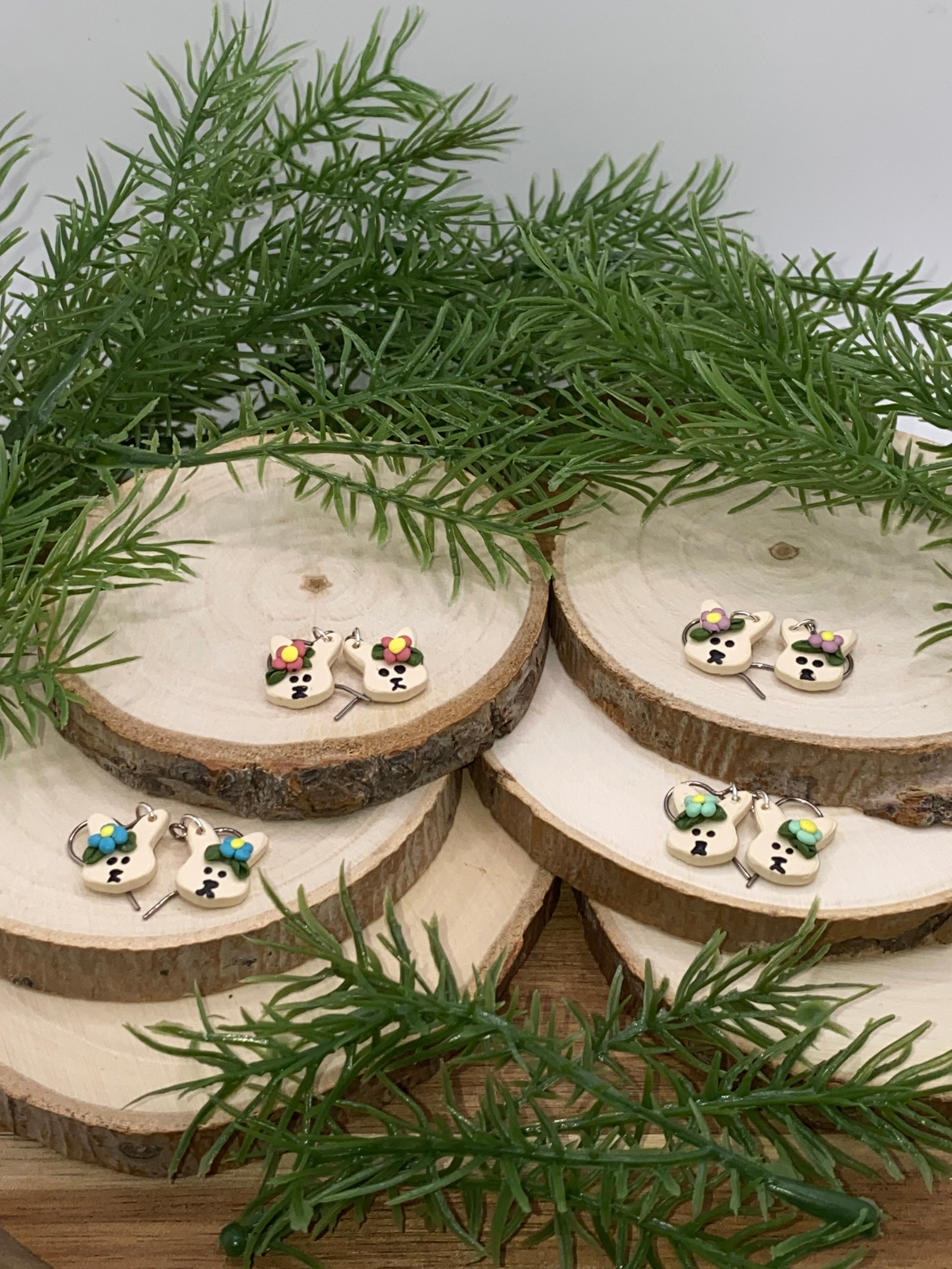 A pair of bunny dangles is available in a variety of colored flowers as part of the spring collection.