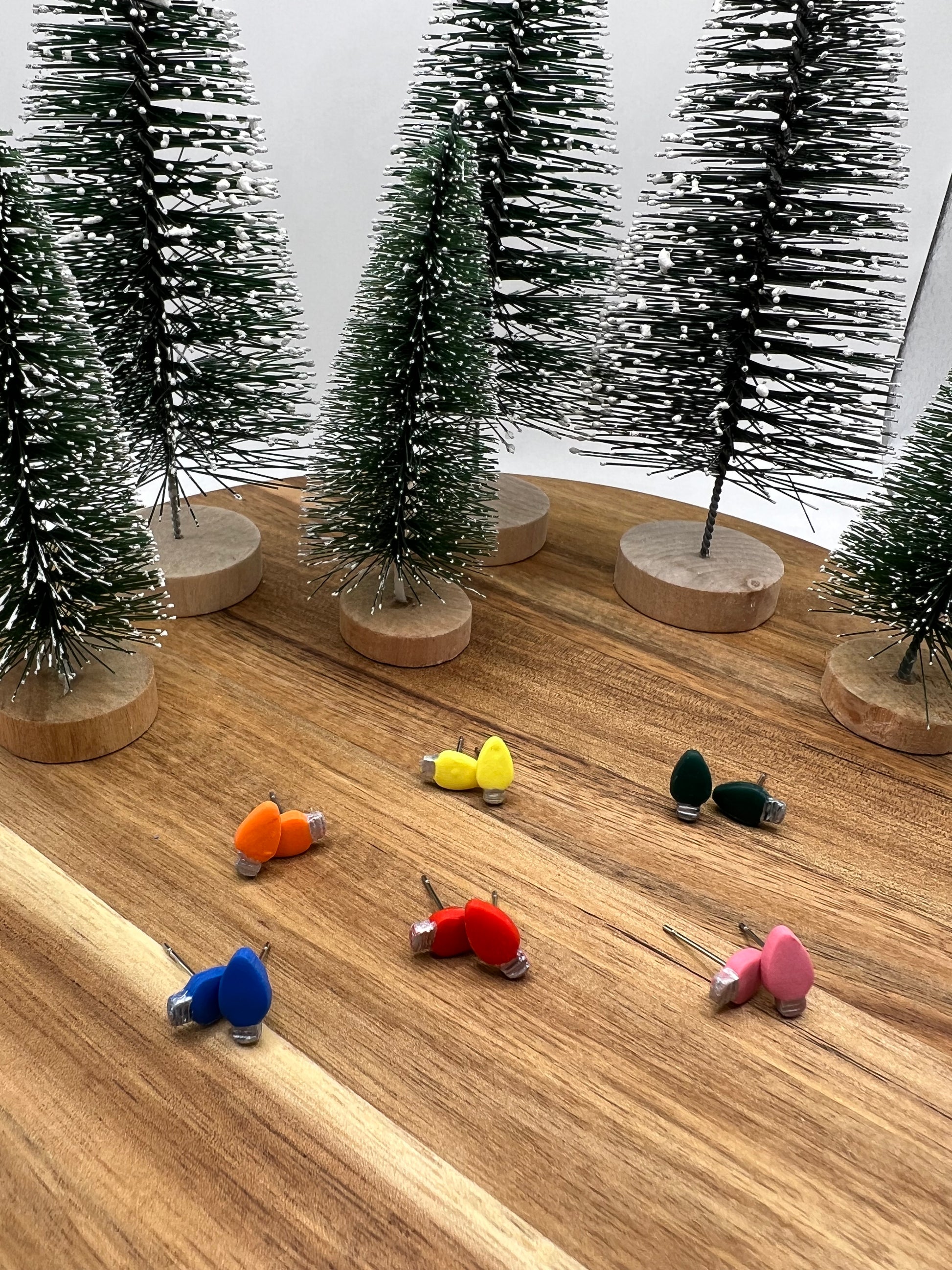 A pair of Christmas light studs is available in a variety of colors as part of the winter collection.