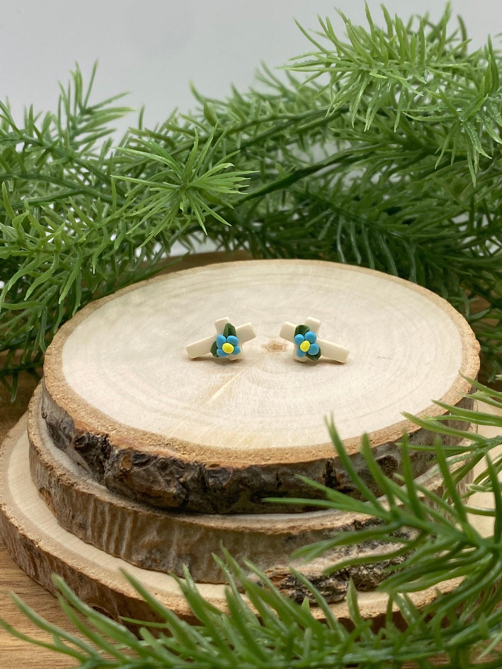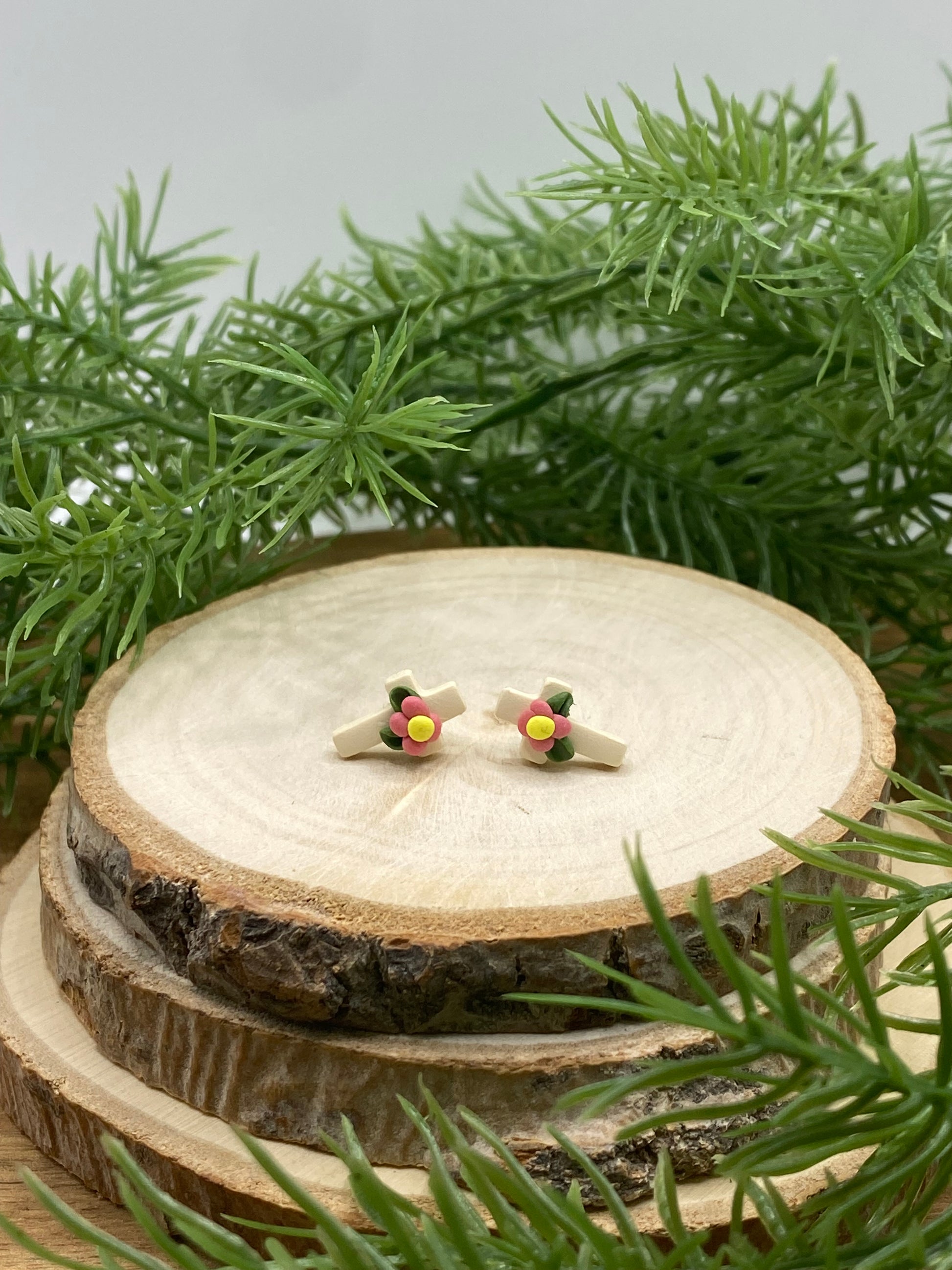 A pair of cross studs is available in a variety of colors as part of the spring collection.
